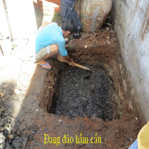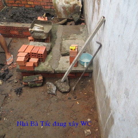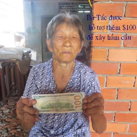 Nhà bà Nguyễn Thị Tắc ở trong khu vực phố xá nên không thể ra ngòai đồng hay có hồ cá tra đi vệ sinh như ở dưới quê. Vì thế mỗi căn nhà phải có hầm cầu riêng, nếu không thì không có chổ nào để đi. Vì nhu cầu này chúng ta đã tốn thêm $100 để xây hầm cầu cho căn nhà này.