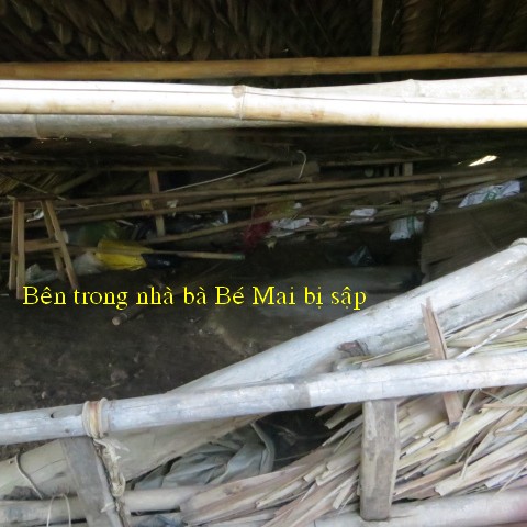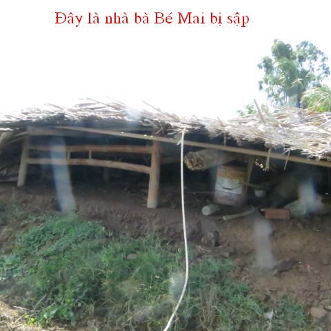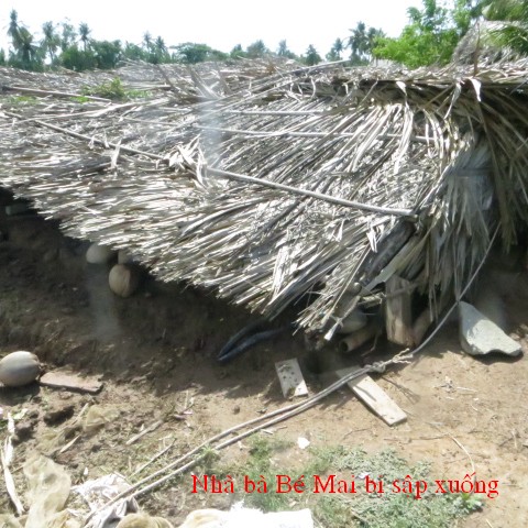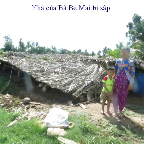 Bà Nguyễn thị Bé Mai, chồng là ông Nguyễn Văn Thừa, sinh năm 1982. Số nhà 17/9, ấp An Hòa, xã Mỹ An, huyện Thạnh Phú, tỉnh Bến Tre. Ông Thừa làm thuê cho chủ nghề cá ở ngoài biển 2 tháng mới về nhà một lần. Bà Nguyễn Thị Bé Mai, sinh năm 1988, có 1 con trai là Nguyễn Minh Khang 6 tuổi học lớp 1. Nhờ gởi con bên nhà mẹ ruột khi đi làm đồng nên cơn lốc vừa qua đã làm sập ngôi nhà của Bà Mai khi đó không có ai ở nhà nên mẹ con thoát chết. Hiện tại Bà Mai và con trai đang ở đậu nhà mẹ ruột. Do làm chỉ đủ ăn nên nhà sập không có khả năng cất lại.
