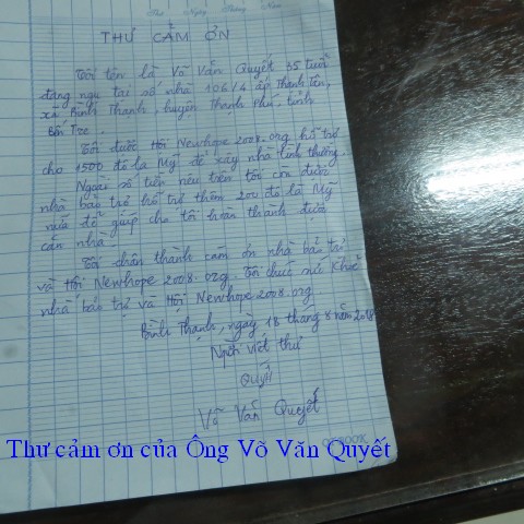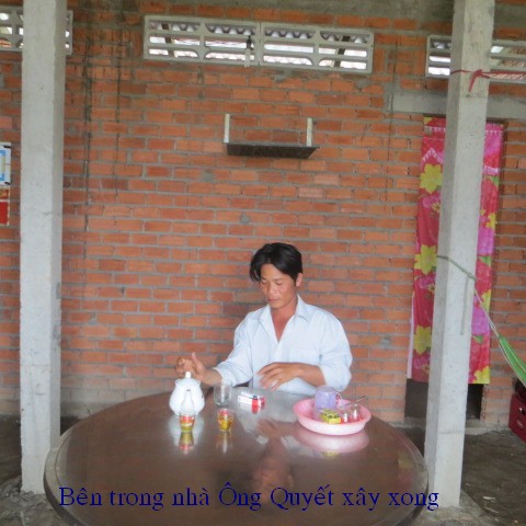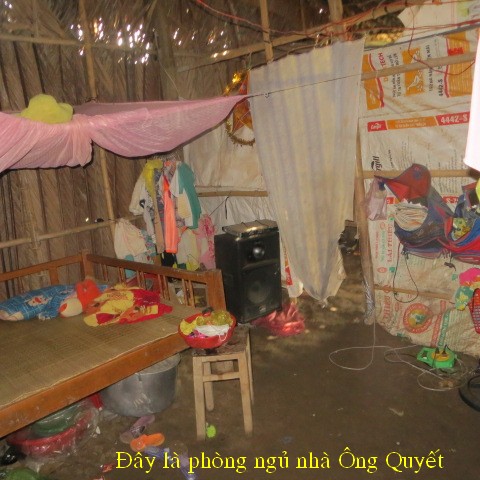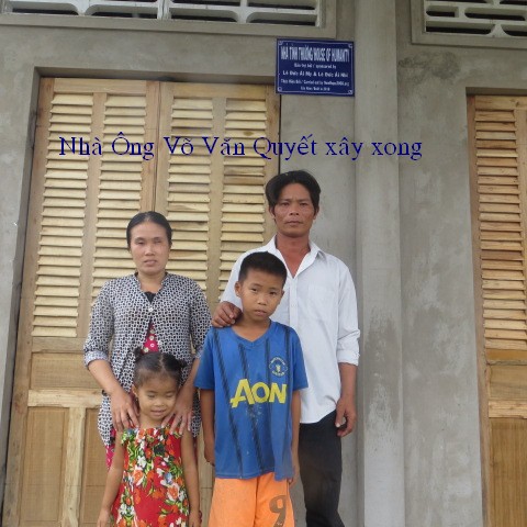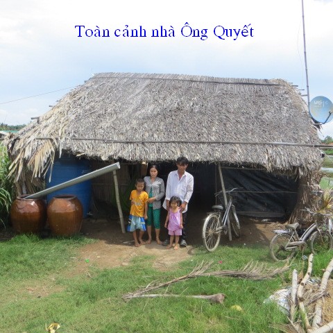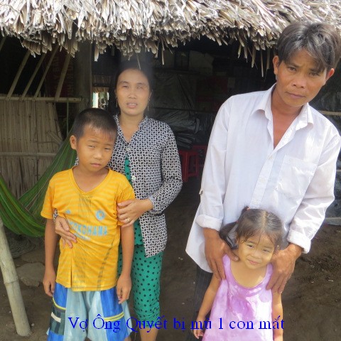 Ông Võ Văn Quyết 35 tuổi, vợ là bà Phạm Hoàng Ân, 34 tuổi. Bà Ân bị mù 1 con mắt trái. Có 2 con nhỏ là Võ Trọng Chí 9 tuổi đang học lớp 4 và Võ Mỹ Ngọc 4 tuổi chưa đi học. Ông Quyết đi làm thuê kiếm sống mỗi ngày được 180.000 đồng ( 8 đô ). Vợ không nghề nghiệp ở nhà trông giữ con. Hiện ngụ tại số nhà 106/3, ấp Thạnh Tân, xã Bình Thạnh, huyện Thạnh Phú, tỉnh Bến Tre. Nhà Ông Quyết chân cột đã yếu hai bên nhà phải chằng chống lại sợ bị sập khi có dông.