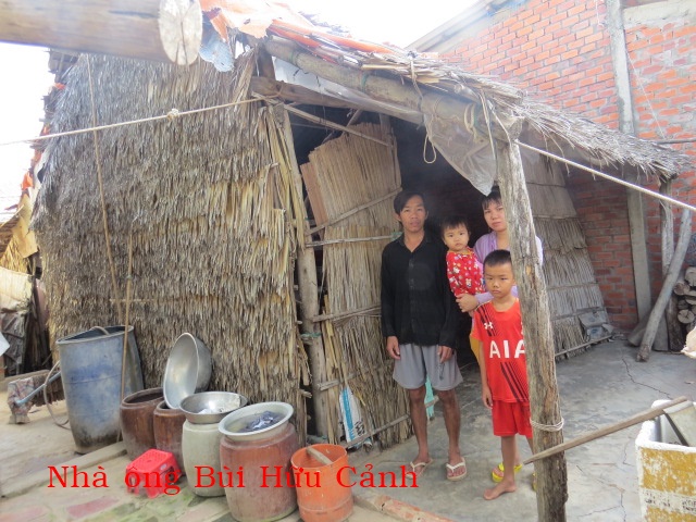 Ông Bùi Hữu Cảnh 30t, số nhà 165/1 Bến Trại ấp An Ninh xã An Thuận huyện Thạnh Phú tỉnh Bến Tre. Gia đình có 4 người: vợ chồng và 2 con, hàng ngày cả 2 vợ chồng ai thuê gì thì làm nấy cuộc sống chỉ đủ mua gạo. Căn nhà được cất nay hơn 6 năm, hiện tại đã dột nát mà không có tiền cất lại.
