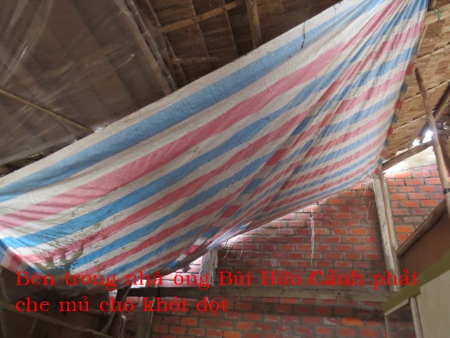 Bui Huu Canh, 30 years old, resides at 165/1 Ben Tai, An Ninh hamlet, An Thuan village, Thanh Phu district Ben Tre providence. He and his wife have 2 children. They work whatever job is available and make only enough to buy food. Their house was built 6 years ago and leaks all leak all over. They have no money to rebuild the house.