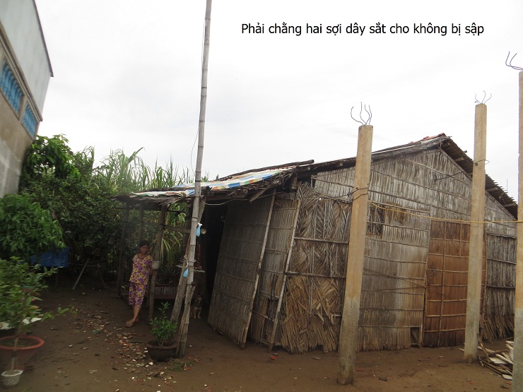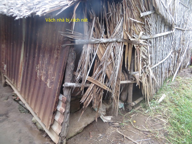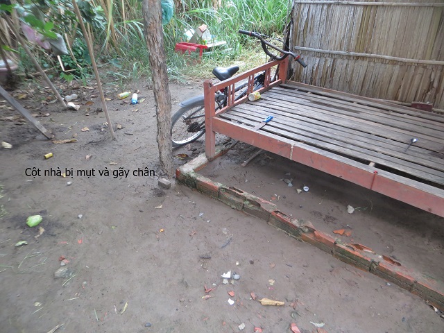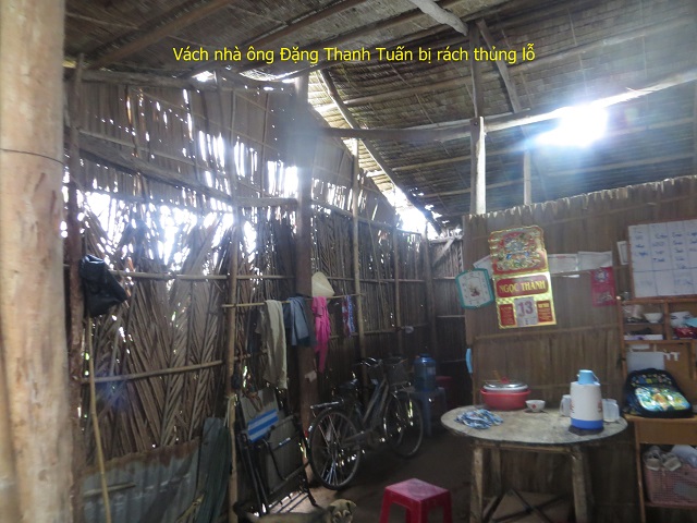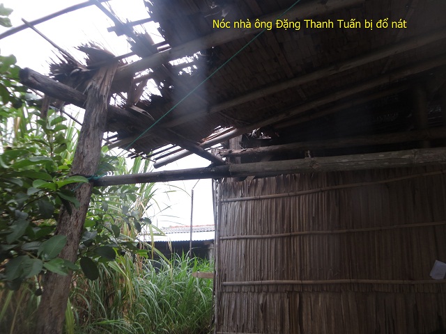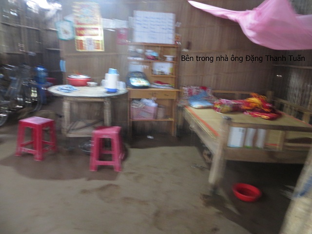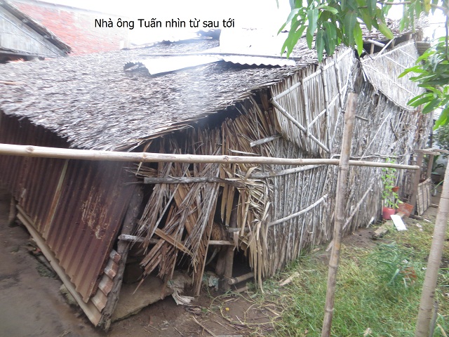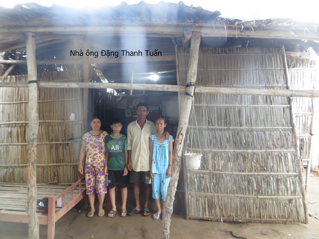 Dang Thanh Tuan, born in 1977, and wife Mai Thi Huyen, born in 1979. They have 2 children, Dang Minh Thu, 14 years old in 8th grade, and Dang Duy Khang, 12 years old in 6th grade. They reside at 1432, Thanh Lai hamlet, Binh Thanh village, Thanh Phu district, Ben Tre providence. He works whatever job is available. His wife stays home and takes care the house and family. Their house is partially collapsed but has no money to rebuild the house.