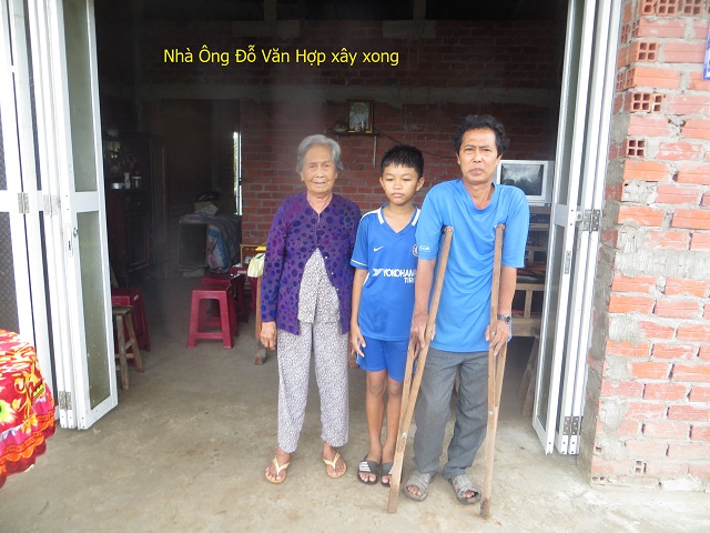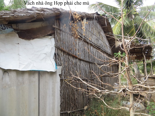 Do Van Hop, 51 years old, and wife Nguyen Thi Thu Van, 46 years old. They have 1 child Do Quoc Nam, 11 years old. His mother Truong Thi Chau, 83 years old, lives with them. They resides at 37/6, An Thanh hamlet, An Thanh village, Thanh Phu district, Ben Tre providence. He has osteoarthritis of the joints but has no money to fix. He relies on crutches to move around. Their family is struggling. The roof leaks and covers with plastic. They have no money for repair.