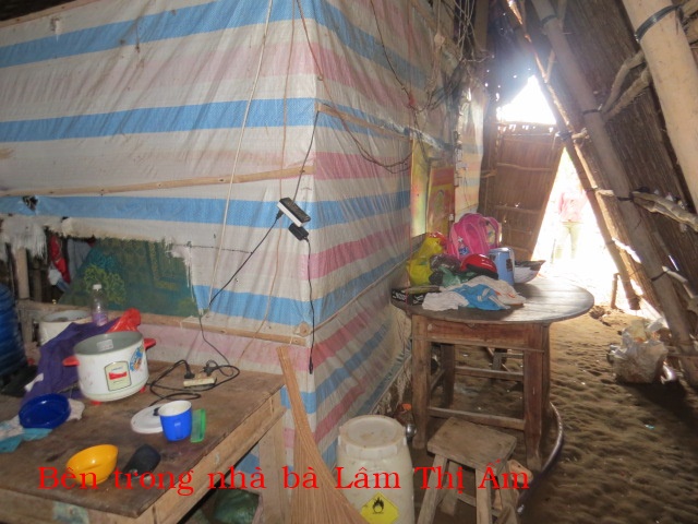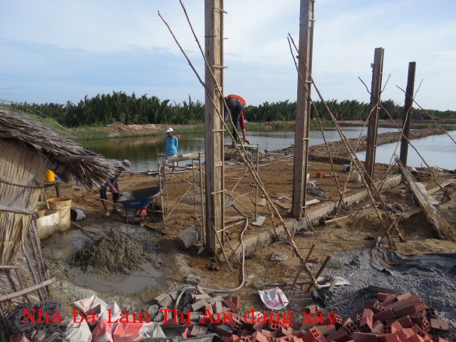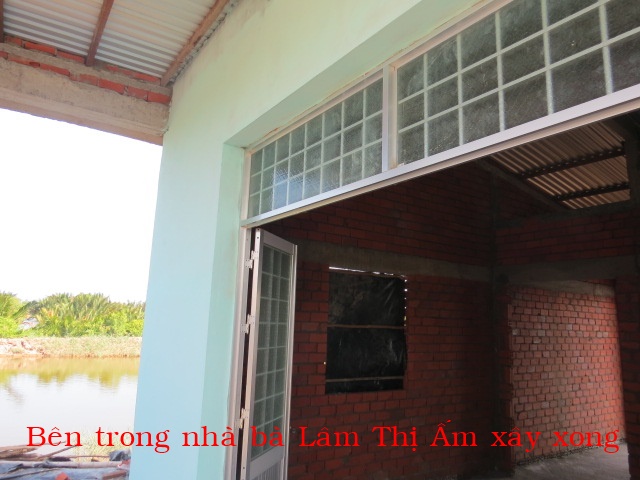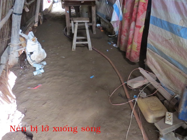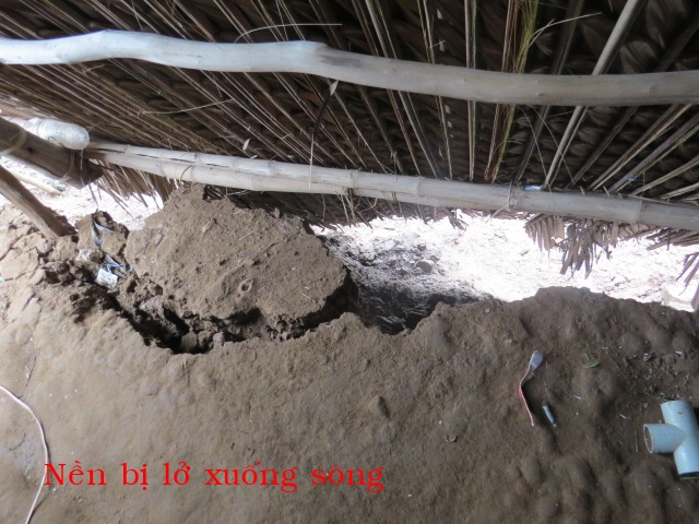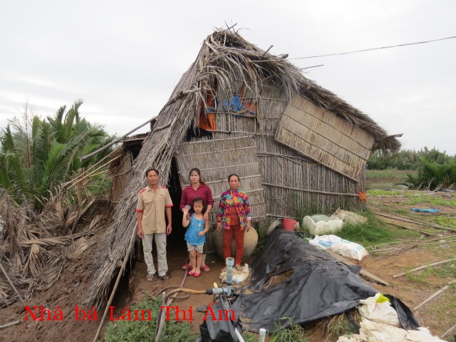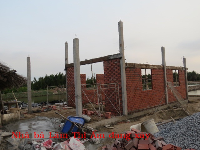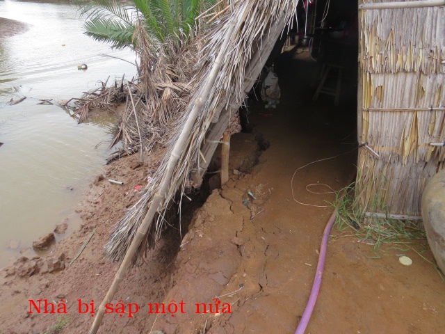 Lam Thi Am, 62 years old, resides in Con Diep hamlet, Thanh Phong village, Thanh Phu district, Ben Tre providence. She lives with her 2 children and 1 grandchild. Her house does not have farming land and works whatever job is available. She makes only enough to buy rice. Her family is struggling and have hardship. Her house was built 5 years. Half of her house is gone due to land side caused by the river. They have no money to repair the house.
