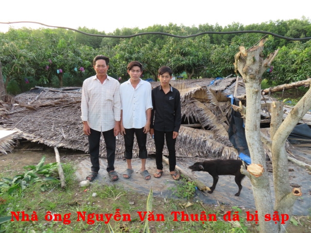 Mr. Nguyen Van Thuan, 44 years old, resides at 91/2 Con Cao, Thanh Phong commune, Thanh Phu district, Ben Tre province. There are 3 people in the family: himself and his two children. Because of poverty, his wife left them more than 2 years ago. Mr. Thuan does whatever job he could find, but he barely makes enough to buy food. The oldest child has dropped out of school, the younger one is studying in 9th grade. Their house has been built more than 6 years ago; the mangrove pillars has collapsed and they don't have money to rebuild the house.
