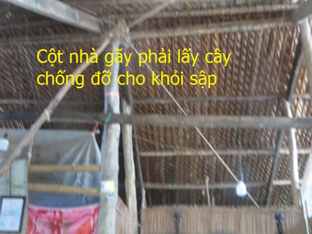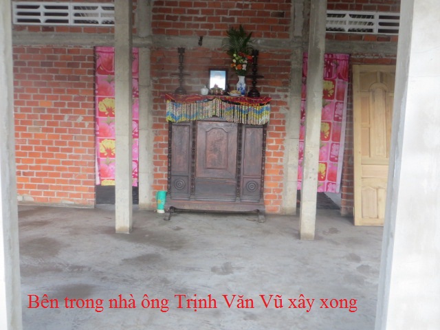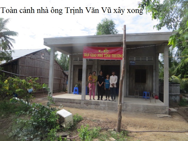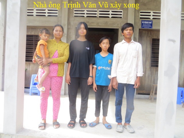 Trinh Van Vu, 38 years old, and wife Do Ngoc Huy, 37 years old. They have 3 children: Trinh Huyen Tran, 17 years old in 11th grade, Trinh Van Hoang Trung, 13 years in 8th grade, and Trinh Ngoc Tran, 2 years old. He works as construction worker making about $10(US)/day. His income can not provide the entire family daily food. They reside at 196/4 Thanh My hamlet, My An village, Thanh Phu district, Ben Tre providence. Their house is partially collapsed and lot of leaks. They did best they can to stop and unsure if the house will be collapsed during raining season. His wife is ill and unable to work; hence, rebuilding the house becomes harder.