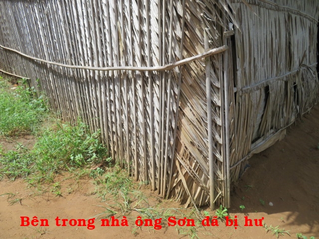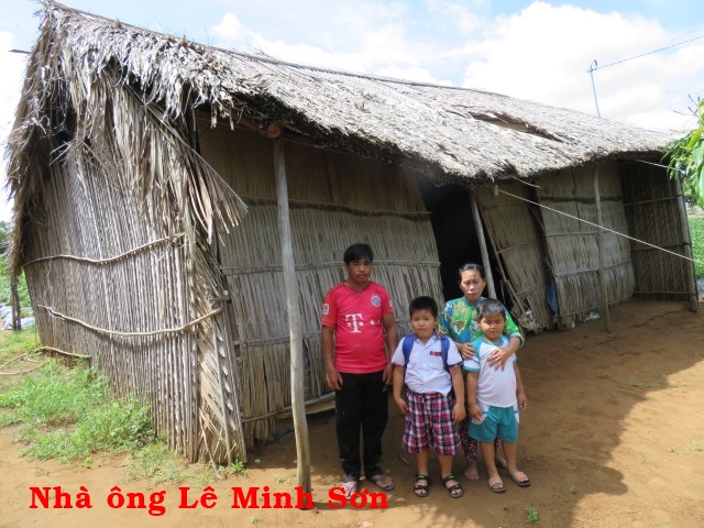 Ông Lê Minh Sơn 36t nhà ở Khâu Băng xã Thạnh Phong huyện Thạnh Phú tỉnh Bến Tre. Gia đình có 4 người: vợ chồng và 2 con, hàng ngày 2 vợ chồng đi đặt lộp ngoài sông về bán để kiếm sống. Căn nhà được cất nay hơn 5 năm bằng cây đước cột chôn, hiện tại chân cột đã mục ngang mặt đất, nóc nhà dột nát vả sụp xuống có thể sập bất cứ lúc nào mà không có tiền cất lại.