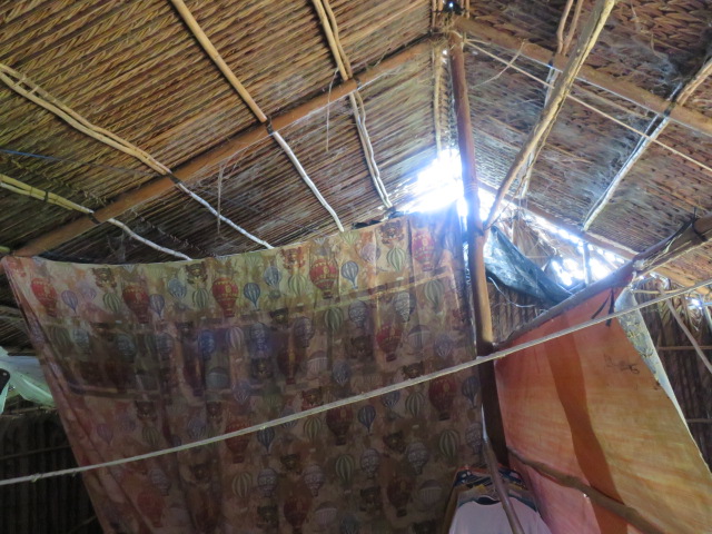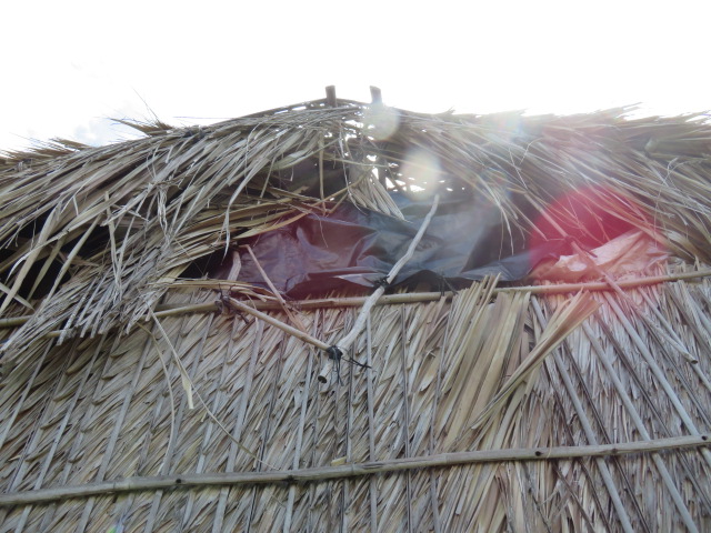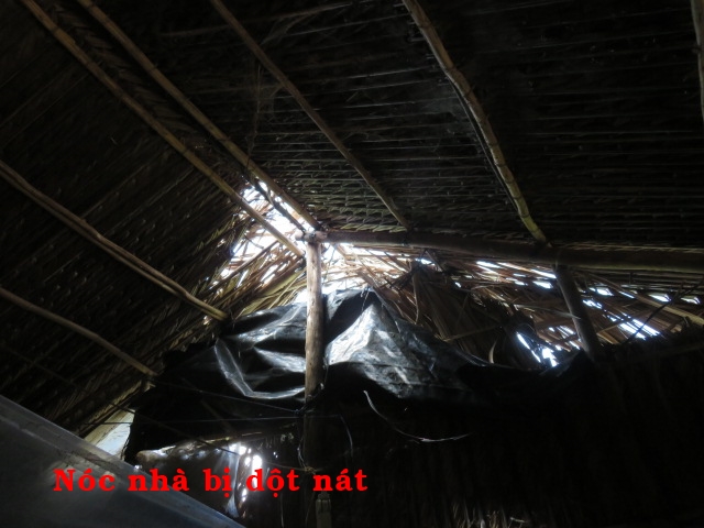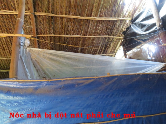 Mr. Le Minh Son, 36 years old, lives in Khau Bang, Thanh Phong commune, Thanh Phu district, Ben Tre province. His family has 4 people: himself, his wife and their 2 children. Every day, he and his wife go to the river to catch fishes to sell to earn a living. The house has been built for more than 5 years with a pillar made of mangrove tree. Now the foot of the pillar has rotted to the ground, the roof is dilapidated and collapsed. The house can collapse at any time and they do not have money to rebuild it.