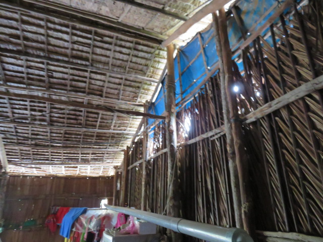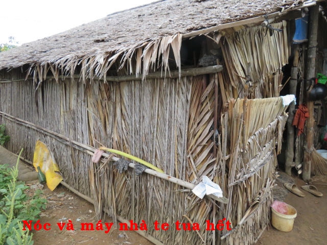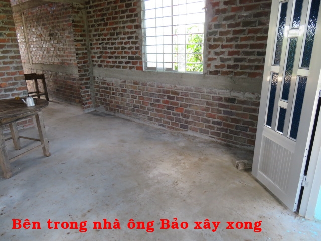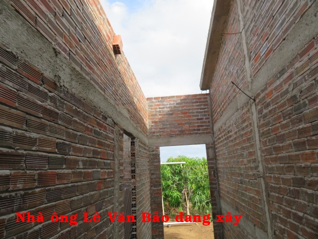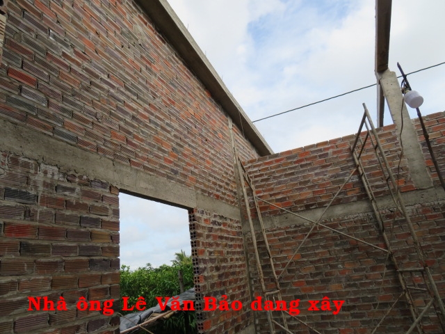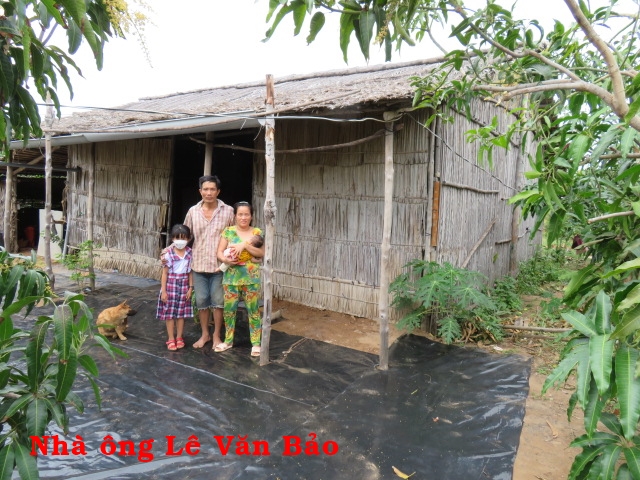 Ông Lê Văn Bảo 36t ở Cồn Mít xã Thạnh Phong huyện Thạnh Phú tỉnh Bến Tre. Gia đình có 4 người: vợ chồng và 2 con. Ông Bảo hàng ngày đi làm thuê (ai thuê gì thì làm nầy). Căn nhà cất nay hơn 6 năm bằng cây đước và lá, hiện tại tất cả các cây cột đã bị mục chân phải chỏi thêm cây chớ không sẽ bị sập, lá trên nóc cũng bị dột nát mà không có tiền cất lại.