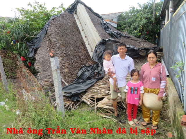 Ông Trần Văn Nhàn 32t nhà ở Cồn Mít xã Thạnh Phong huyện Thạnh Phú tỉnh Bến Tre. Gia đình có 4 người: vợ chồng và 2 con, công việc cả 2 vợ chồng không ổn định hàng ngày ai thuê gì thì làm nấy. Căn nhà cất nay hơn 7 năm và đã bị sập mà không có tiền cất lại. Hiện tại cả gia đình sang nhà người thân ở đậu.