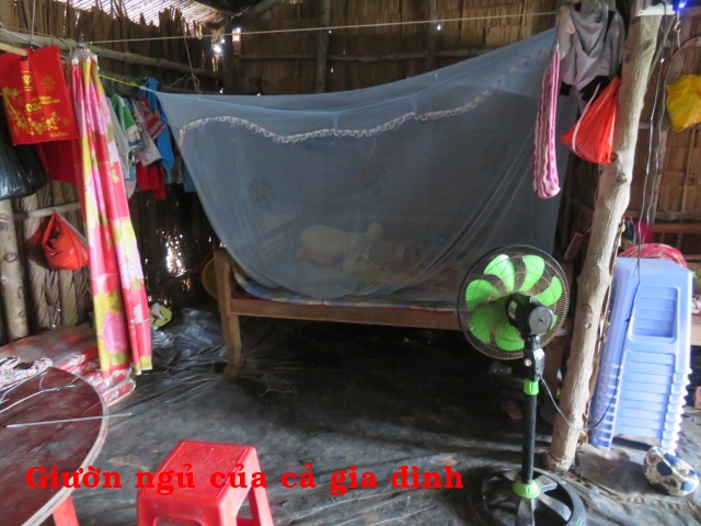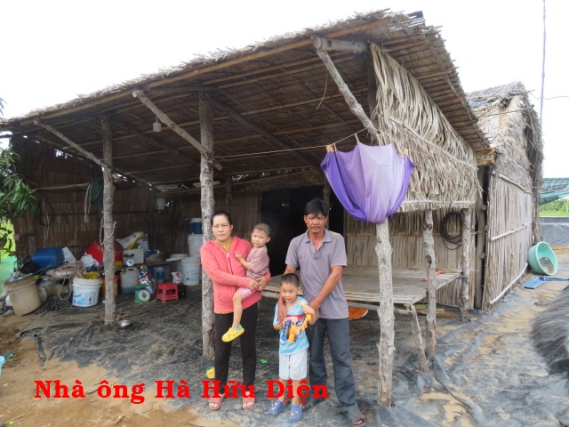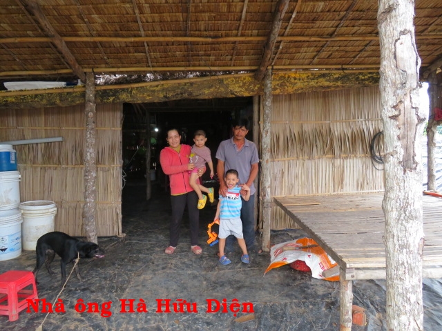 Ông Hà Hữu Diện, 37t, nhà ở Cồn Mít, xã Thạnh Phong, huyện Thạnh Phú, tỉnh Bến Tre. Gia đình ông có 4 người: vợ và 2 con. Nhà không có ruộng đất, hàng ngày ai thuê gì thì làm nấy. Cuộc sống rất bấp bênh. Căn nhà được cất nay hơn 5 năm bằng cây đước, cột chôn. Hiện tại chân cột đã bị mục ngang mặt đất nên có thể sập bất cứ lúc nào mà không có tiền cất lại.