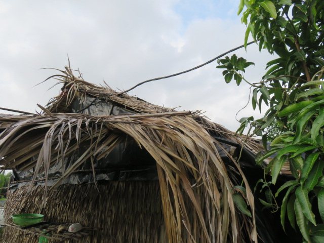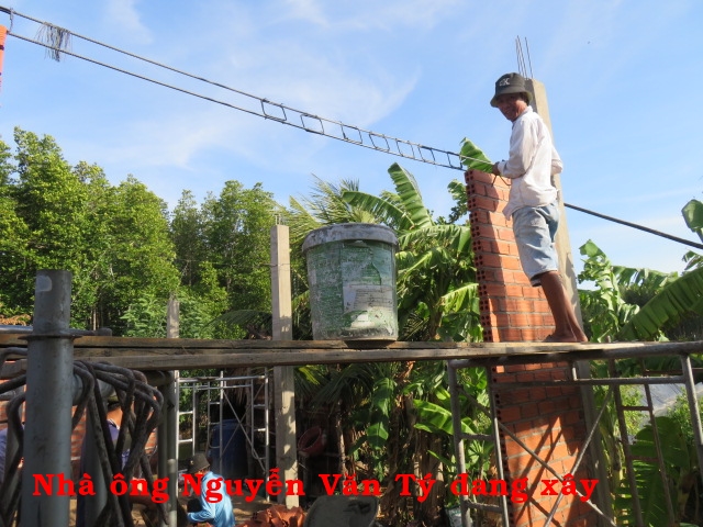 Mr. Nguyen Van Ty, 33 years old, lives in Con Cao, Thanh Phong commune, Thanh Phu district, Ben Tre province. The family has 4 people: Mr. Ty, his wife and their two children (one child has not returned from school). Mrs Ty is currently pregnant for more than 6 months. The family does not own any land, so each day they work what ever odd jobs they could find takes to make ends meet. The house was built more than 4 years ago using mangrove trees, buried in the ground, so the base of the column across the ground is now rotten and could collapse at any time.