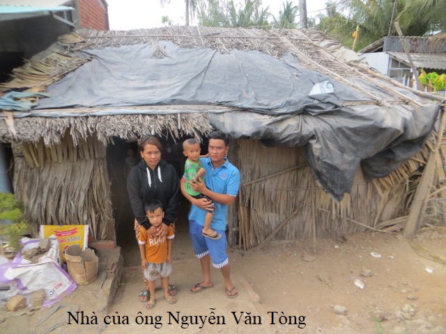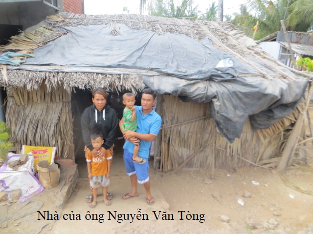 Ông Nguyễn Văn Tòng, 29 tuổi, vợ bà Lê Thị Kim Ngân 28 tuổi. Ông Tòng có hai con nhỏ tên là Nguyễn Minh Thức, 5 tuổi học mẫu giáo, và Nguyễn Hoàng Khải, 3 tuổi còn nhỏ. Ông Tòng đi làm thuê chỉ đủ sống ngày hai bữa, còn vợ chỉ lo chăm con nhỏ nên không có đi làm vì vậy ông Nguyễn Văn Tòng không có khả năng xây nhà. Ông Nguyễn Văn Tòng đang cư ngụ tại số nhà 84/2, ấp Thạnh Bình, xã Bình Thạnh, huyện Thạnh Phú, tỉnh Bến Tre.