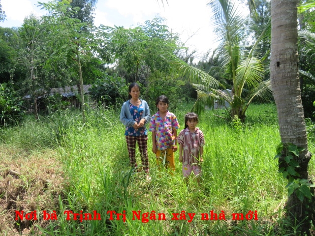 Mrs. Trinh Thi Ngan, 37 years old, lives in Thanh My hamlet, My An commune, Thanh Phu district, Ben Tre province. Her family has 4 people: she and 2 children, her husband had a stroke and died more than 1 year ago, 2 children are still in school. Every day, she does whatever people hire her to do. She has no land, the house foundation was given to her by her sister. Currently, she is staying at a relative's house.