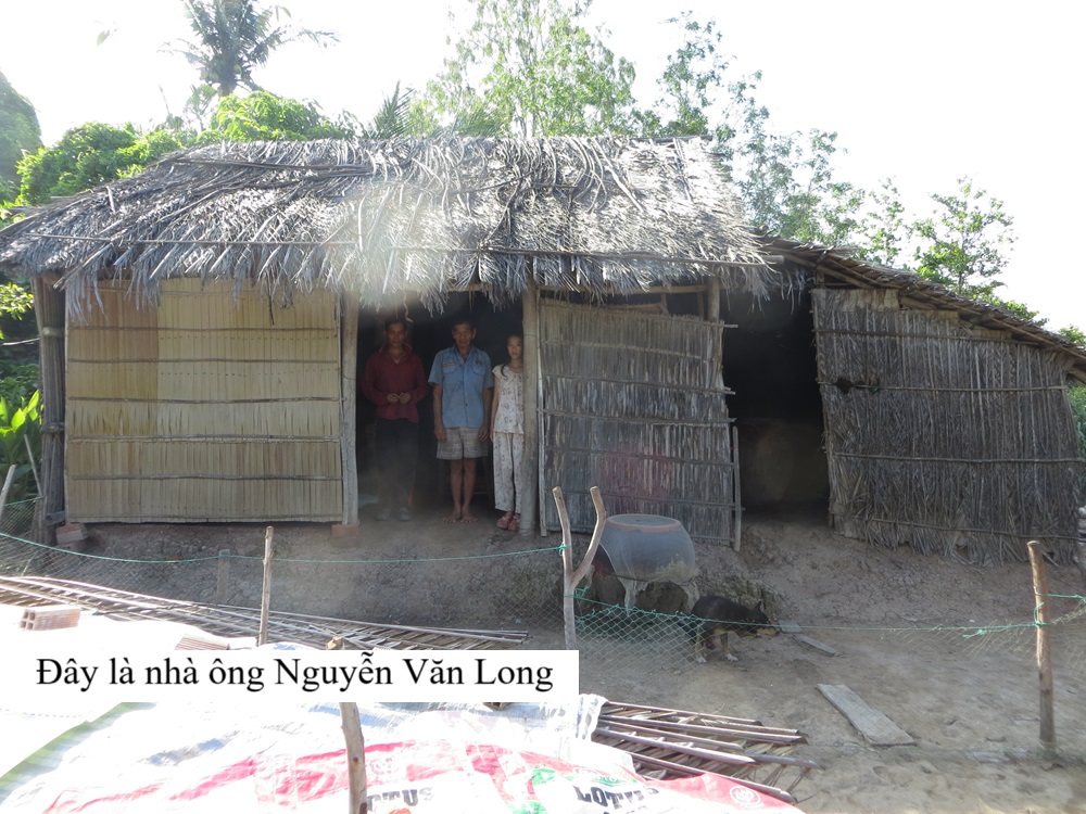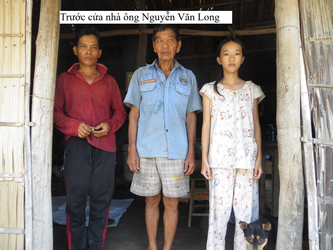 Mr. Nguyễn Văn Long, 75 years old. His son, Nguyễn Văn Khanh, 41 years old, works as a laborer in the local area, taking on whatever jobs are available, with an unstable income. Mr. Long has a paternal granddaughter named Nguyễn Thị Ngọc Nhi, 12 years old, currently in 7th grade. The roof and walls of Mr. Long’s house are made of leaves and are now severely deteriorated and rotting, but he has no means to rebuild the house. He currently resides at 31/1, Thạnh An Hamlet, Bình Thạnh Commune, Thạnh Phú District, Bến Tre Province (formerly), now Thạnh Phú Commune, Vĩnh Long Province.