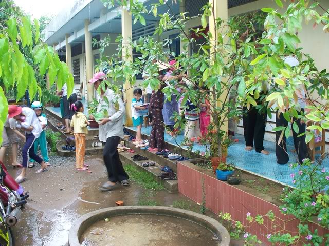 Trường mẫu giáo Bồn Bồn được phát vào cuối ngày và lúc đó trời mưa nặng