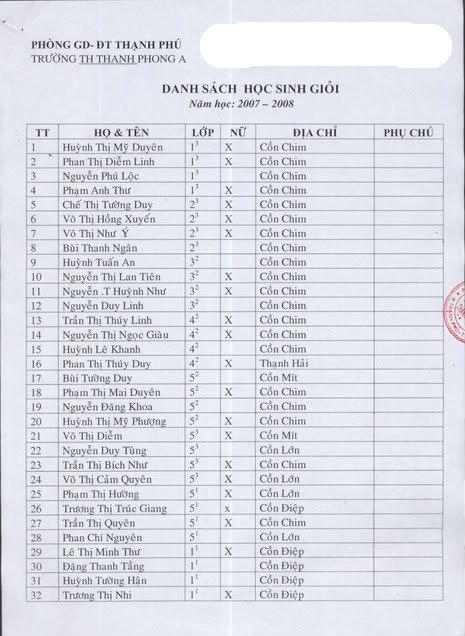 first to fifth grade in all island-villaged schools. Just like in Giao Thanh,