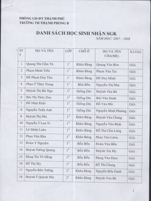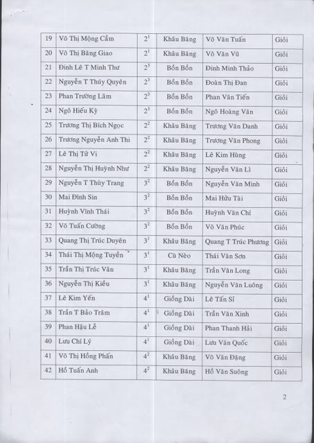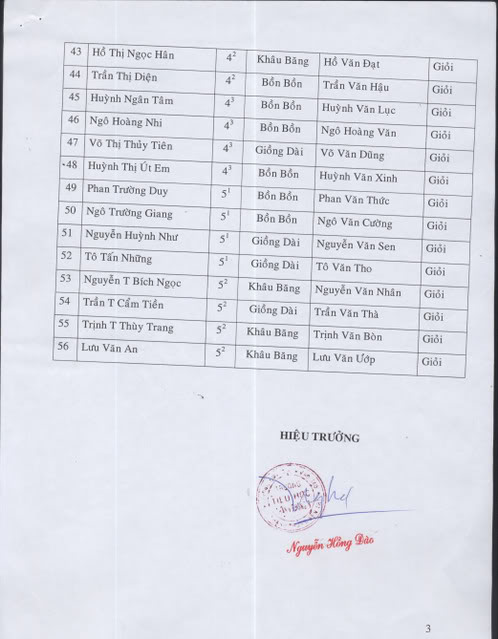 Danh sách 56 em học sinh ưu tú: