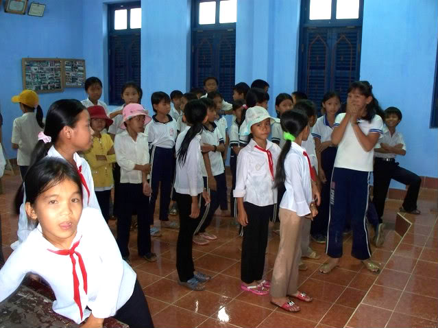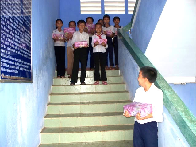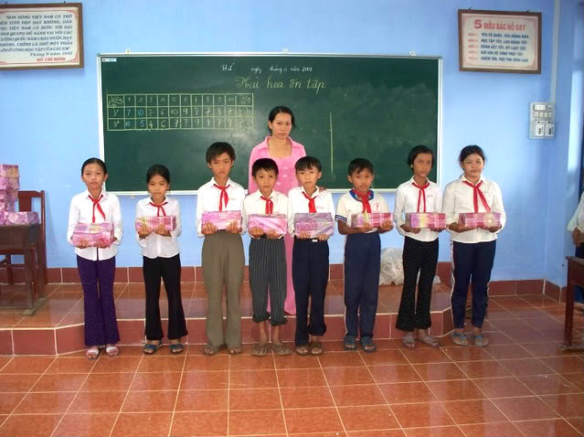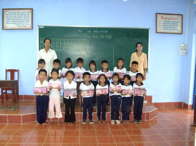 đầy nước . Các em được phát trong lớp học . Cũng như các nơi khác, mỗi em