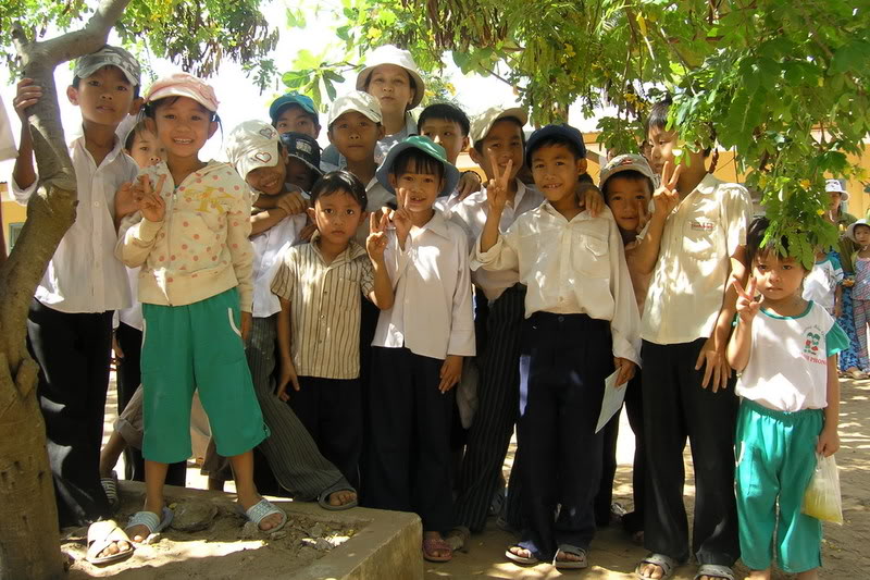 Điểm kế tiếp đoàn đến, hẹn 10 giờ sáng, chưa tới giờ, các em đến chưa đông đủ, thời gian con dài nên đoàn có cơ hội nói chuyện, vui chơi và chụp hình lưu niệm với các em, thăm phòng ốc của trường