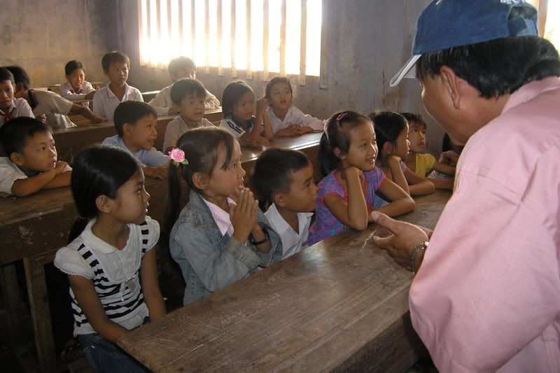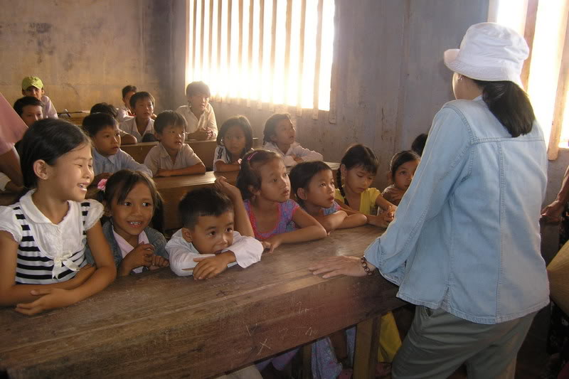 Đoàn tản ra đi thăm các em trong từng phòng học. (một vài hình ảnh, xem trong link, các em trong lớp học, không có quà)