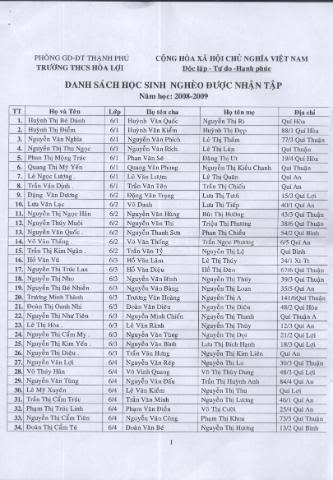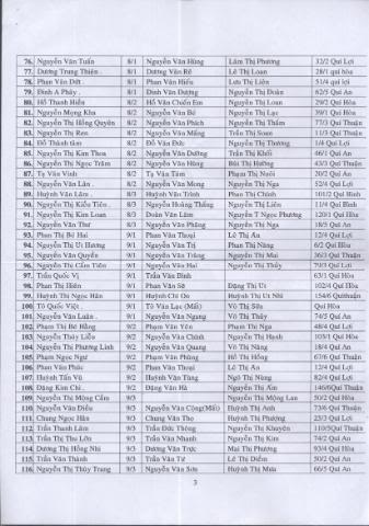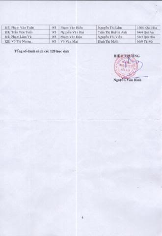 Danh sách 120 em nhận quà – List of 120 needy students: