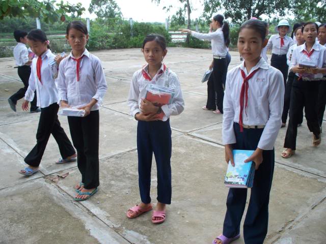 Chúng ta đã phát tập cho 120 em nghèo tại trường trung học cấp II Hòa Lợi (lớp 6 tới 9) trong tuần