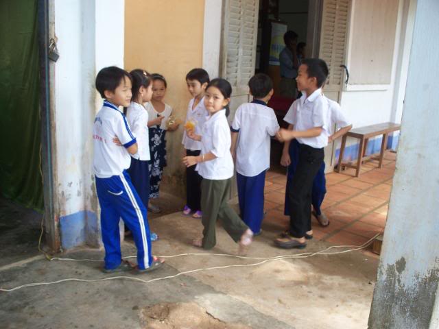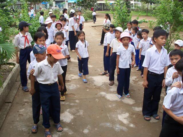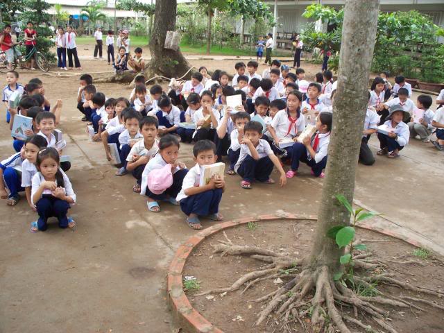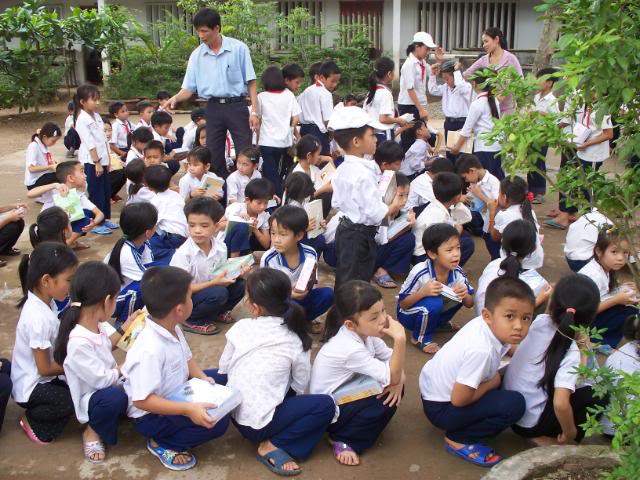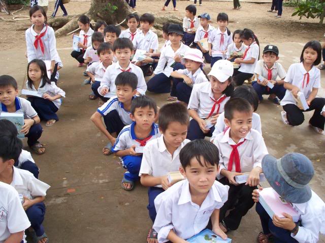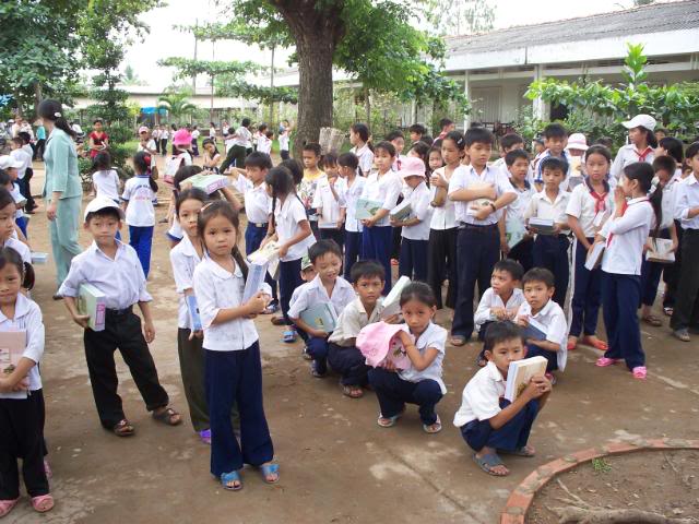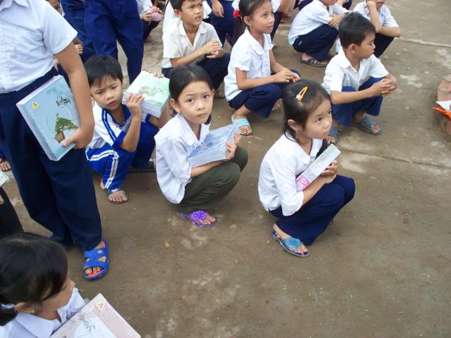 Chúng ta đã phát tập cho 100 em nghèo tại trường tiểu học Huong My trong tuần