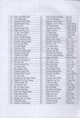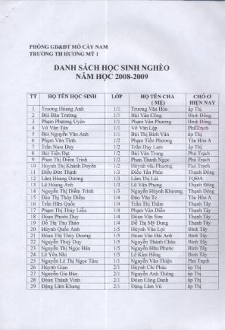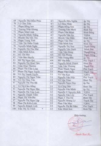 Danh sách 100 em nhận quà – List of 100 needy students: