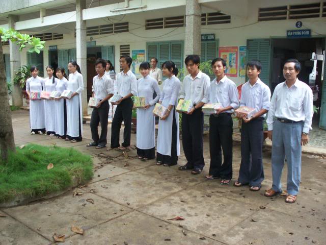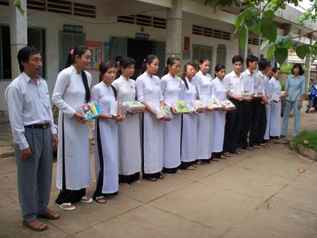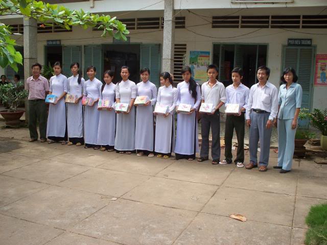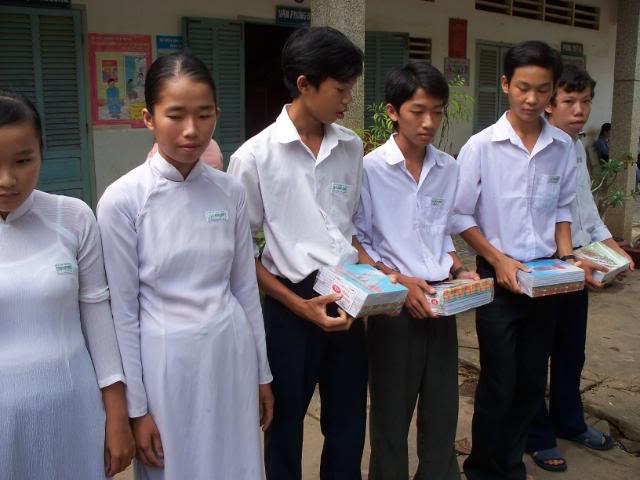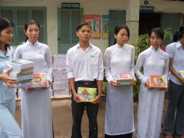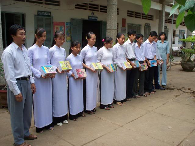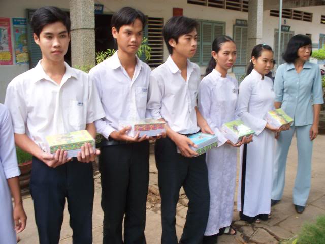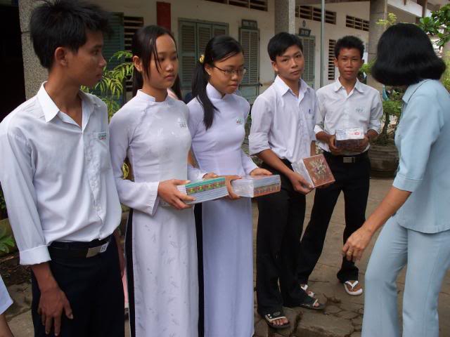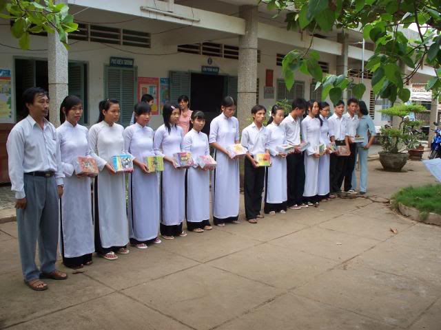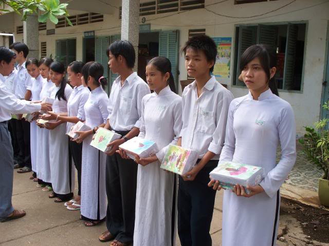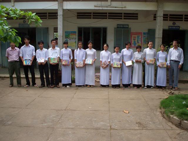 We have distributed notebooks to 150 needy students in Le Hoai Don high school in the week of May 6th, 2009. This school is also referred by the local people as Cau Van High School or Thanh Phu High school. Its location is right off the ferry docking station of Cau Van, the only high school level 3 (grade 10th to 12th) within reach for this island village region)