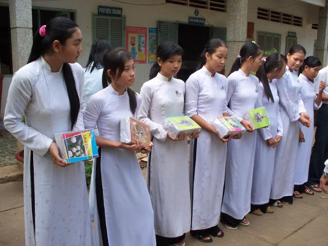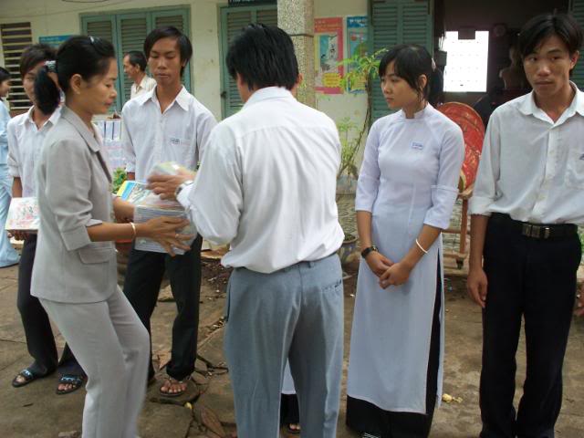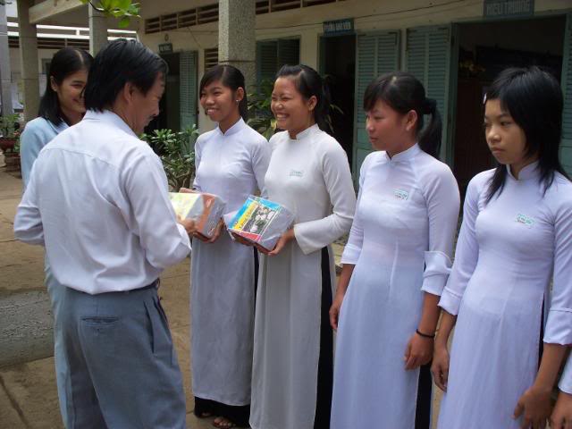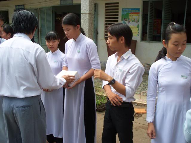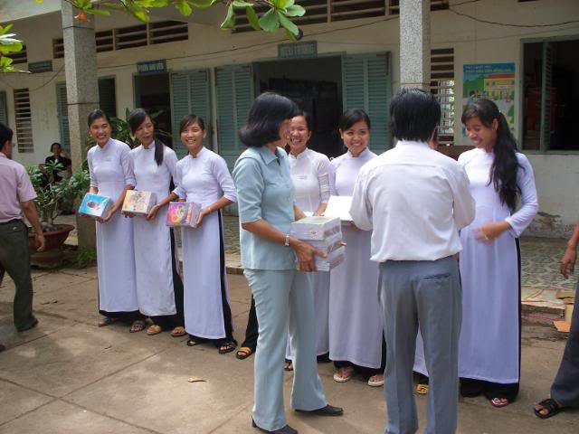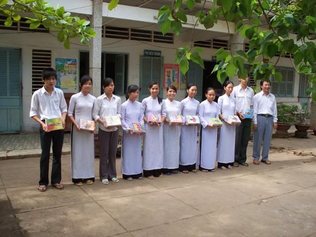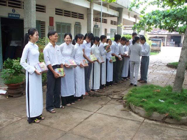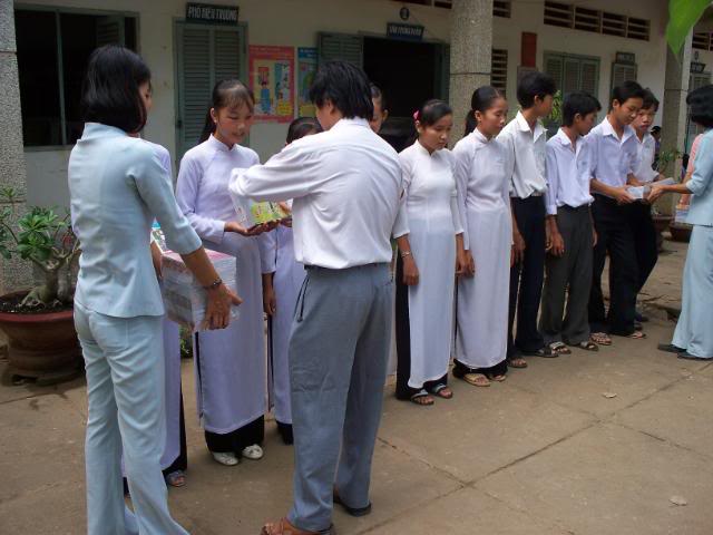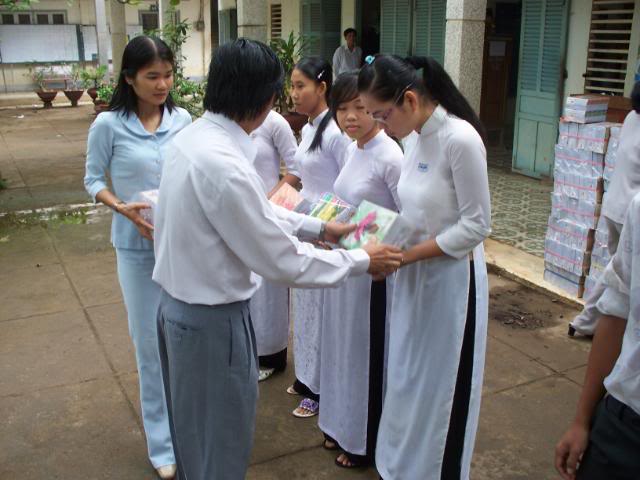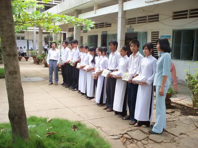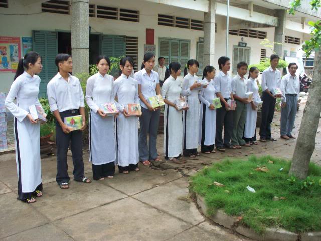 We have distributed notebooks to 150 needy students in Le Hoai Don high school in the week of May 6th, 2009. This school is also referred by the local people as Cau Van High School or Thanh Phu High school. Its location is right off the ferry docking station of Cau Van, the only high school level 3 (grade 10th to 12th) within reach for this island village region)