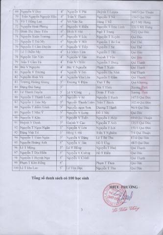 Danh sách 100 em nhận quà – List of 100 needy students: