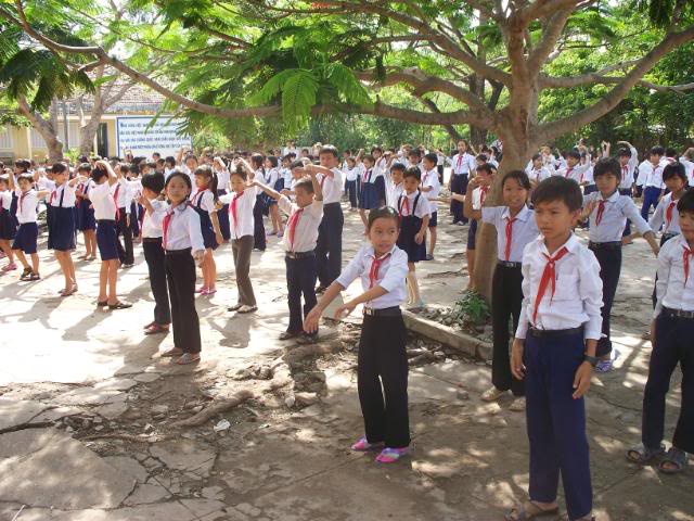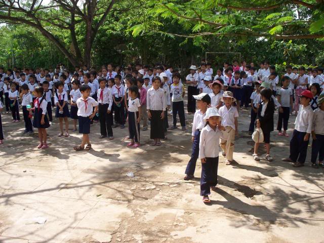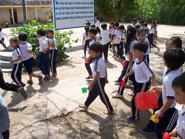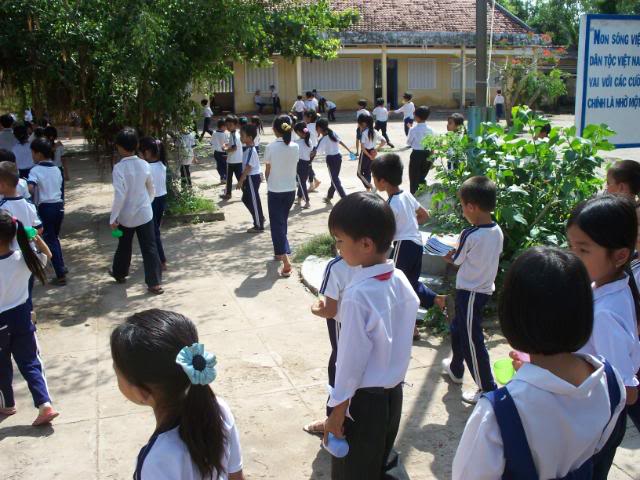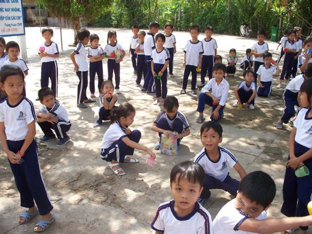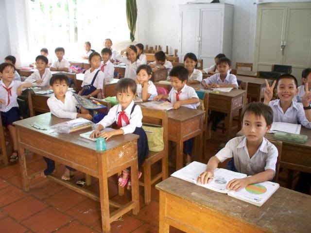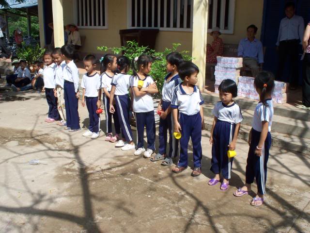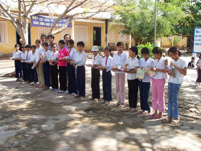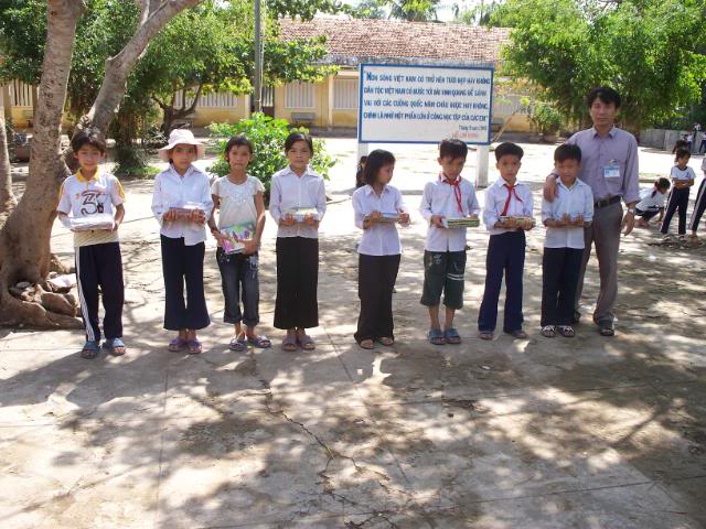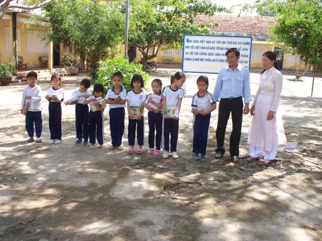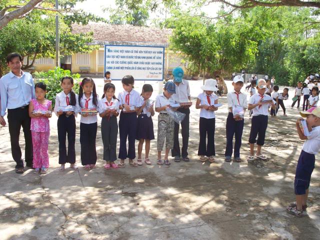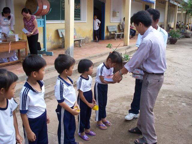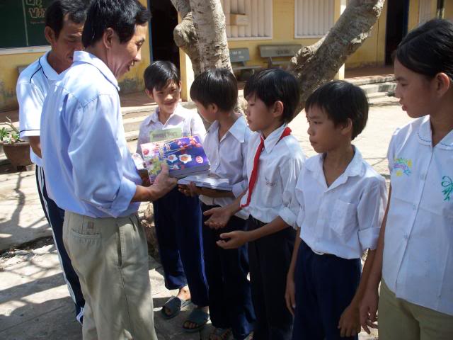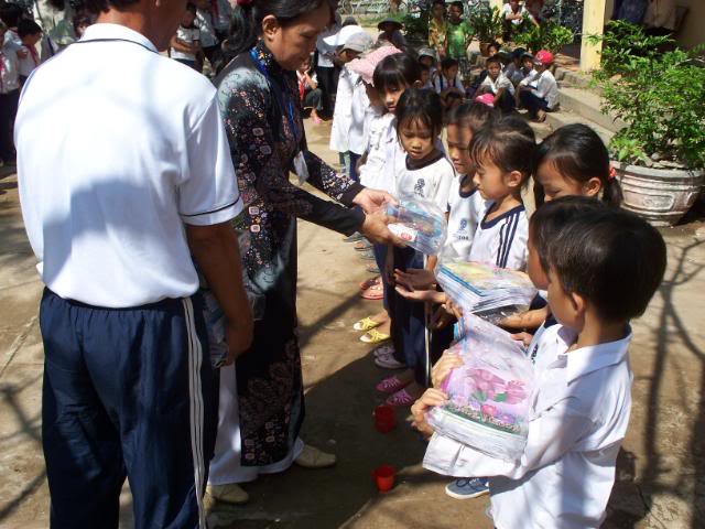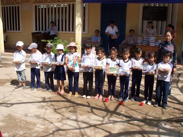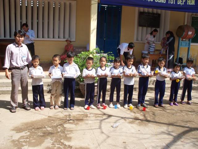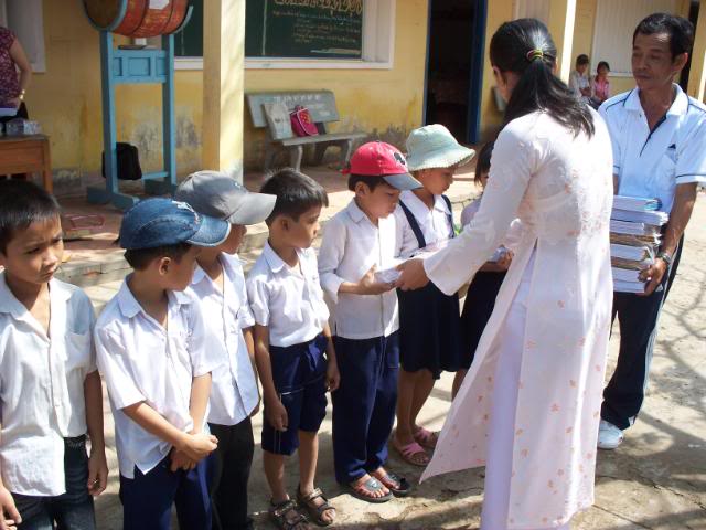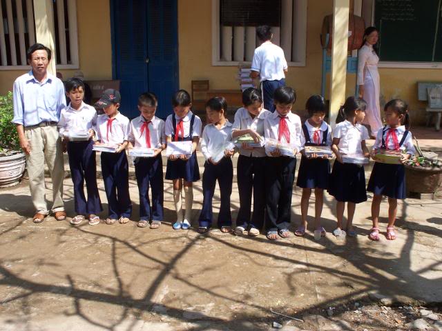 Chúng ta đã phát tập cho 100 em nghèo tại trường tiểu học Quới Điền trong tuần