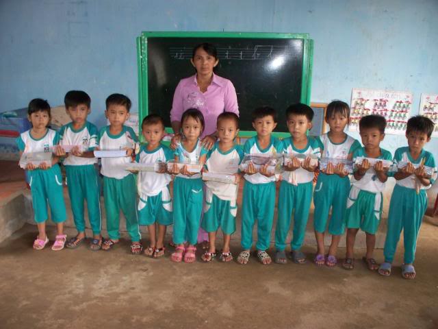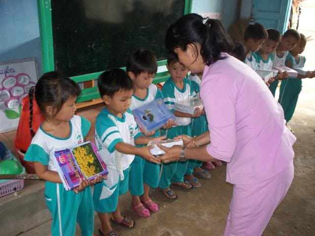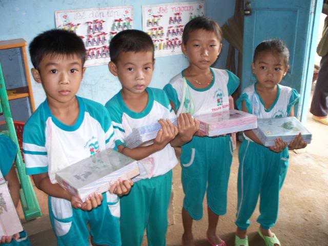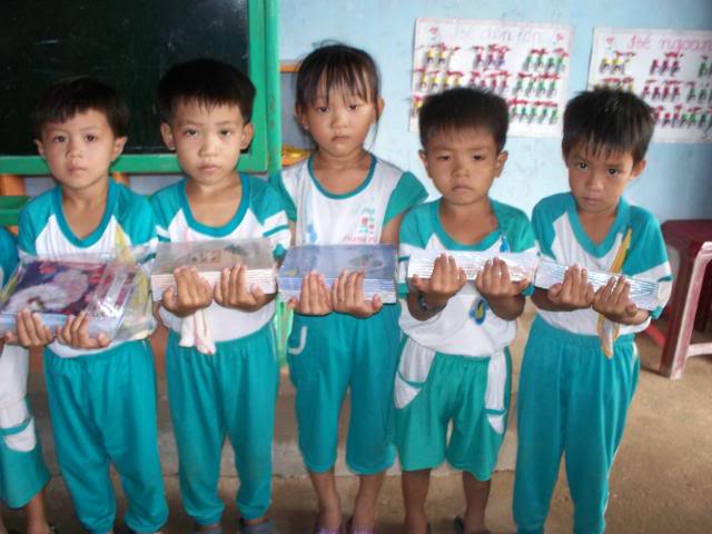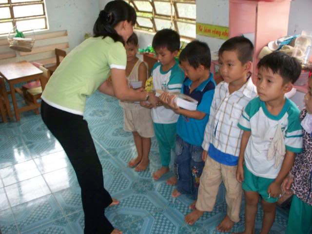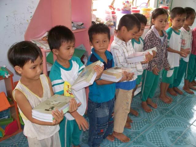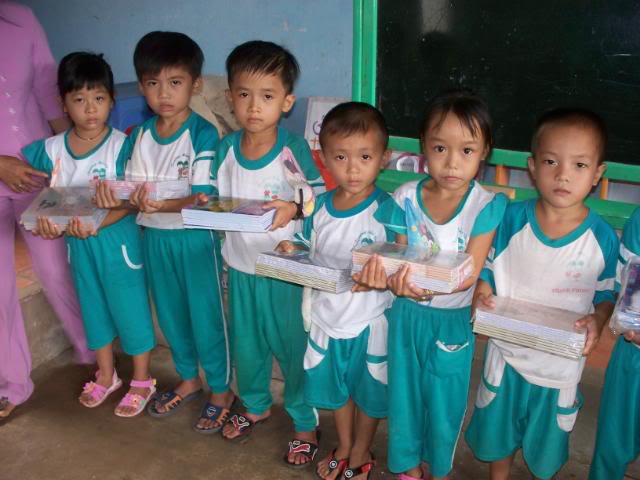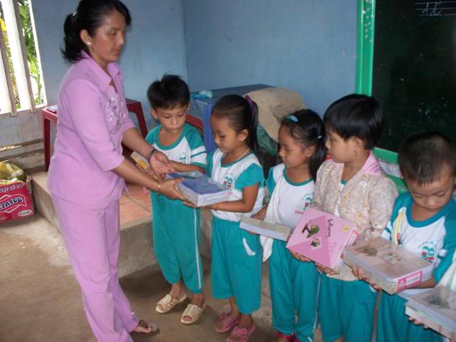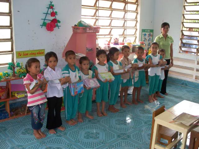 Chúng ta đã phát tập cho 50 em nghèo tại trường mẫu giáo Thạnh Phong trong tuần