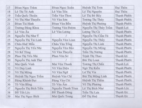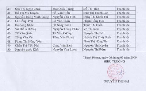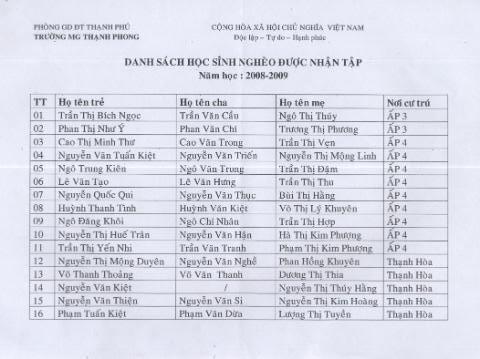 Danh sách 50 em nhận quà – List of 50 needy students: