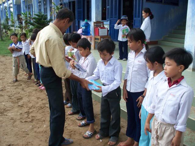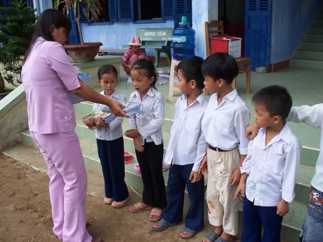 2009 - Phát tập cho các em của trường tiểu học Thạnh Phong B