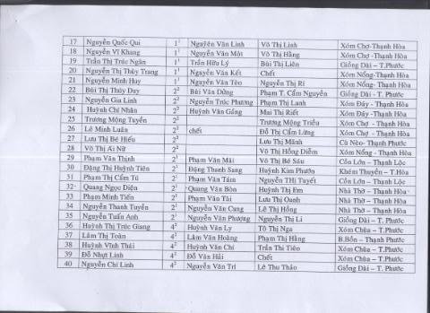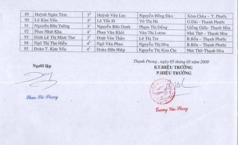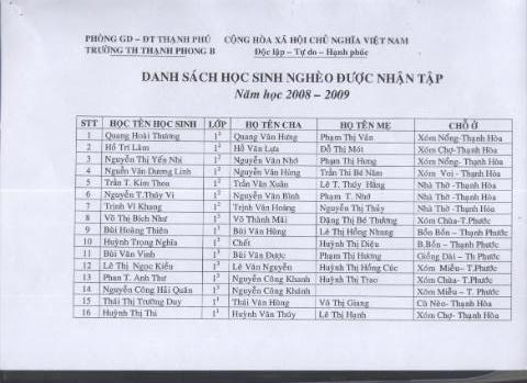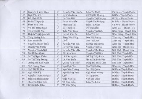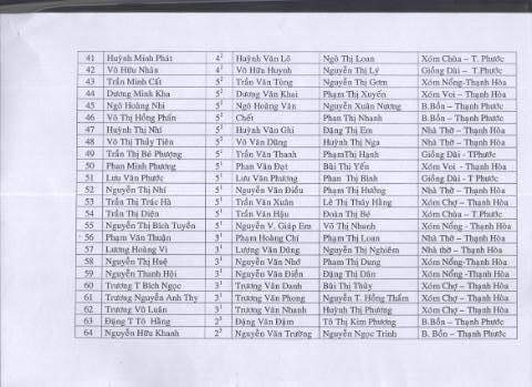 Danh sách 95 em nhận quà – List of 95 needy students: