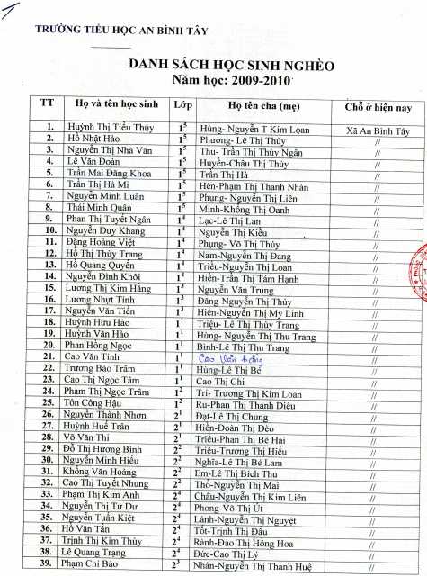 Trường tiểu học An Bình Tây là 1 trong 14 trường chúng ta đã chọn để giúp năm nay.
