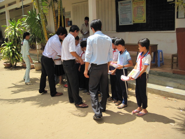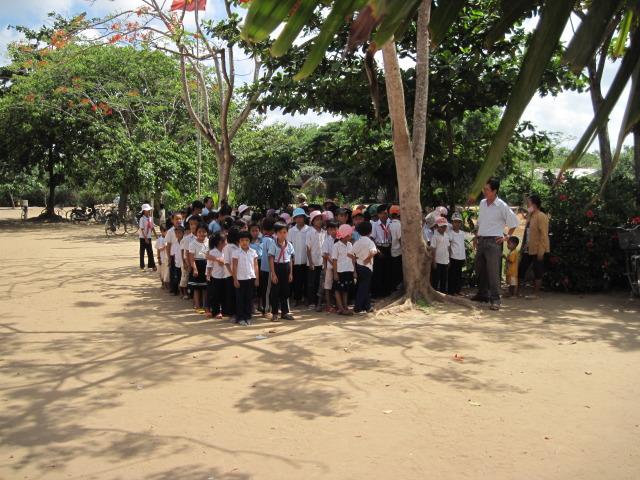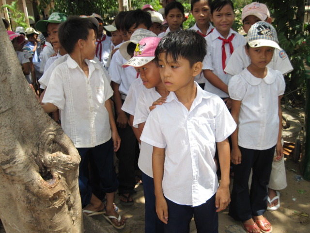 An Bình Tây elementary school is one of the 14 schools we have helped this year. This is an effort on our part to reach beyond Thanh Phu district. There are always many poor students in the island villages in Thanh Phu district, and they do need our notebooks every year; however, we want to start giving other poor students living outside of the island villages a chance.