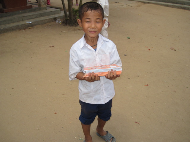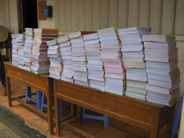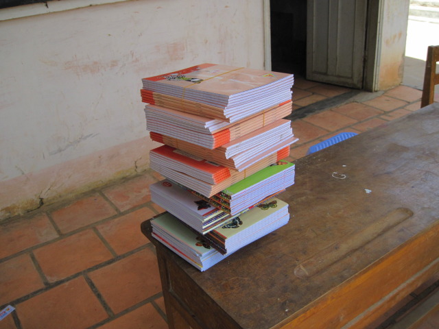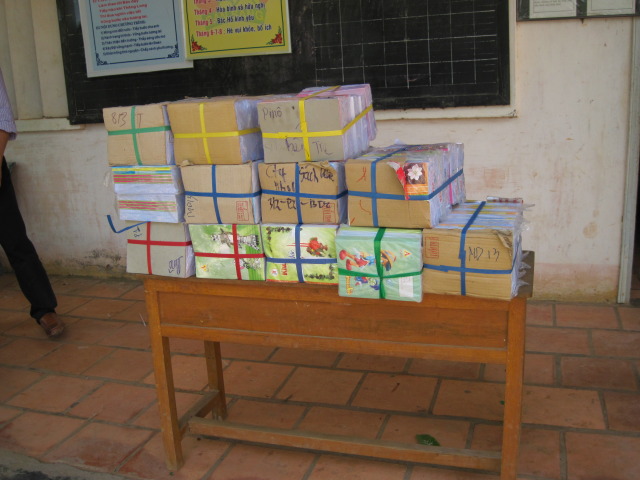 Chúng ta đã phát tập cho 120 em tại trường tiểu học An Bình Tây vào sang ngày 12 tháng 5, 2010 vừa qua . Mỗi em được 10 cuốn tập, mỗi cuốn 100 trang.