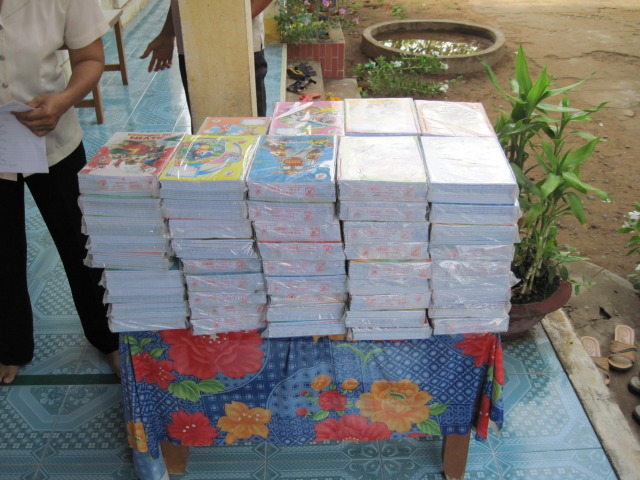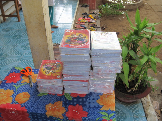 Chúng ta đã phát tập cho 80 em tại trường mẫu giáo Thạnh Phong vào sáng ngày 18 tháng 5, 2010 vừa qua . Mỗi em được 10 cuốn tập, mỗi cuốn 100 trang.