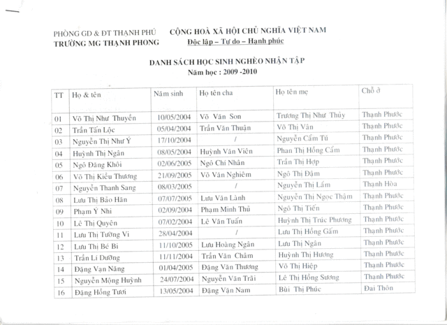 Trường mẫu giáo Thạnh Phong là 1 trong 14 trường chúng ta đã giúp năm nay.