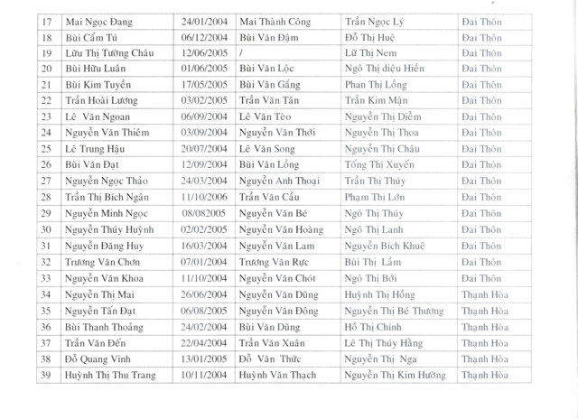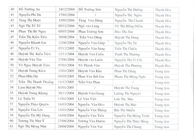 Danh sách 80 em nhận quà – List of 80 needy students: