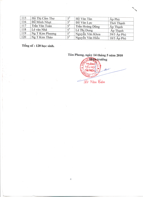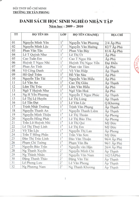 2010 - Phát tập cho các em nghèo của trường tiểu học Tân Phong