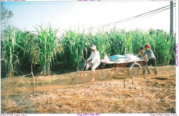 Gạo được mua từ ghe gạo ở bến đò và đang trên đường chở về: