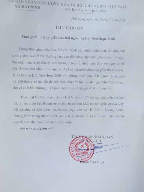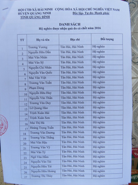 Phát Gạo Quảng Bình 2016 - Cứu trợ dân bị nạn cá chết - Xã Hải Ninh