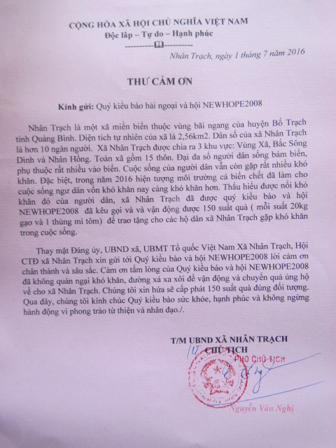Phát Gạo Quảng Bình 2016 - Cứu trợ dân bị nạn cá chết - Xã Nhân Trạch