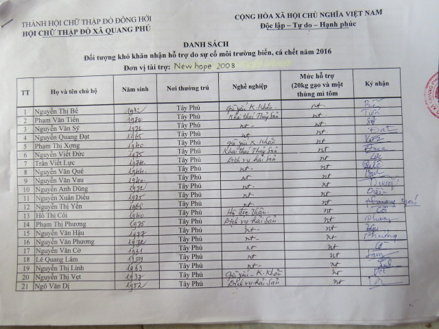 Phát Gạo Quảng Bình 2016 - Cứu trợ dân bị nạn cá chết - Xã Quang Phú
