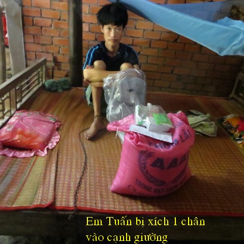 31. Mr. Tuan Van Nguyen, 33 years old, living with his family in Thanh Hung sub-hamlet, My Hung hamlet, Thanh Phu district, Ben Tre province. Mr. Tuan has mental illness. His family ties up one of his legs to the house to prevent him from wandering and getting lost. He has wandered and gotten lost before.