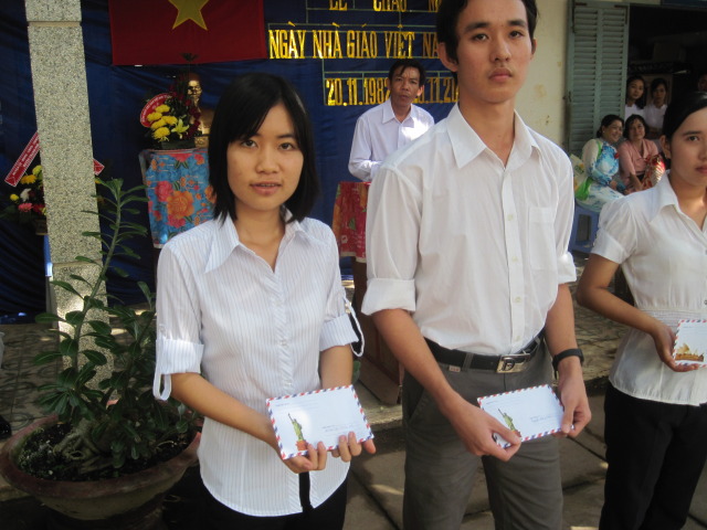 The students have been selected from 3 different high schools: Tân Phong, Giao Thạnh, and Thạnh Phú. The schoolboard of directors and principal helped with the nomination based on the students’ performance and their financial situation. Our organization came to each house to interview their parents/relatives and confirmed the final selection. These students do not come from the poorest of the poor because the poorest don’t have the means to complete high school in Vietnam. They come from families who are struggling to make ends meet and their parents are willing to do any job to keep them in school. All of them are laborers with no skills.